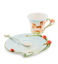 Собака — друг человека. И даже если у вас нет возможности завести себе питомца, то вы всегда можете взглянуть в добрые и умные собачьи глаза, если у вас есть чайная пара «Собака». Изделие выполнено с большим вкусом и фантазией, мастерство художников смогло создать удивительный и реалистичный рисунок. И теперь эта чайная пара готова украсить ваш дом, чтобы вы всегда были настроены позитивно и умиротворенно.