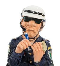Дубинка, шлем, рация, прочные кожанные сапоги и, конечно же, очки - все эти мелкие детали дополняют внешний вид полицейского и вызывают интерес у всех, кто впервые видит эту фигурку. Особенно замечательным такой подарок станет для служителей закона, однако, его качество исполнения и красота оформления сделают его удачным приобретением для самых разнообразных людей и по любому празднику!