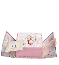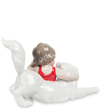 На девочке – короткое красное платьице. Ей не больше трех лет, но первые друзья у юной красотки уже появились: она изображена в компании с большим белым псом, охраняющим ее счастливое детство и принимающим участие в веселье. Похоже, девочка и пес давно сдружились и полностью доверяют друг другу; сегодня им предстоит провести вместе веселый праздник.