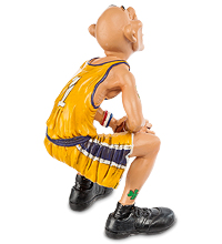 Кто сказал, что баскетбол – не азартная игра? Статуэтка баскетболиста передает нам настоящий игровой момент - замер на секунду нападающий с мячом в руках, готов отдать пас партнеру по команде, а он, паршивец, не там стоит, где надо. Приходится объяснять, что неправ он прямо через всю площадку, так что нелестный отзыв услышит не только игрок, но и все, кто присутствует в зале.