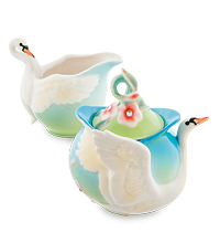 Столовые сервизы, красиво украшенный трапезный стол – показатели гостеприимности дома и мастерства хозяйки. Фарфоровый набор из сахарницы и молочника в виде прекрасных лебедей станут незаменимым дополнением настольных сервизов для вашего дома.