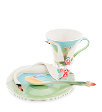 Эта кофейная пара достойна того, чтобы из неё пили самый дорогой и ароматный кофе. Плавно перетекающие друг в друга цвета, пластика и грациозность форм благородного фарфора, а также непревзойденное совершенство прекрасных лебедей - это всё неотъемлемые атрибуты королевской шикарной посуды.