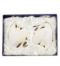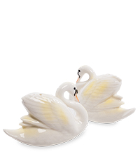 Набор, состоящий из солонки и перечницы. Всё просто - и, вместе с тем, в композиции выражены самые глубокие чувства лебедей. Невероятно изысканные формы, этот неповторимый белый цвет, с еле заметными вкраплениями нежнейшей желтизны - всё это делает набор “Соль-Перец” одним из самых восхитительных предметов из фарфора.
