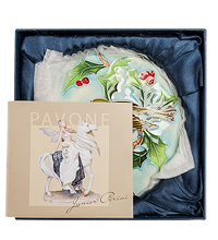 Расписанная талантливым художником крышка изображает чудесного снегиря, который уселся на ветке и спрятался в тени калиновых листьев и ягод. Природные рисунки всегда были популярны среди украшений подобного рода аксессуаров для дома. Изделие из фарфора подобного типа станет отличным подарком для дорогого вам человека и подарит хорошее настроение. Вы сможете хранить в этой шкатулке свои украшения, драгоценности, письма или прочие безделушки, которые любите пересматривать и оставлять на память о тех или иных событиях.