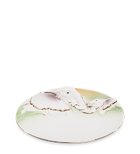Блюдо, основным композиционным моментом которого являются… слоны! Роспись, выполненная удивительно мягкими красками, отлично сочетаются с пастельным зеленым цветом блюдца. А белый цвет тела слона, словно вырождающийся из зеленого… на это великолепие союза цветовой нежности и изящности плавных форм можно смотреть вечно, не отрываясь.