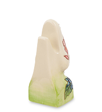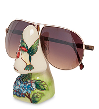Белое основание украшено большим красным цветком, к которому подлетает интересная зелёная птичка, слегка напоминающая «Колибри». А подставка для держателя усыпана синими цветами, напоминающими ветку дерева. По своему размеру она не нуждается в дополнительной опоре. Очень устойчива, поэтому, когда в неё помещаются очки, то она вместе с ними не упадёт.