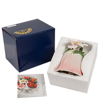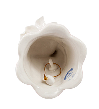 Миниатюрный колокольчик изготовлен в виде весеннего цветочного бутона. Фарфоровое изделие разукрашено светлыми пастельными тонами, что еще больше подчеркивает его трогательность и утонченность.