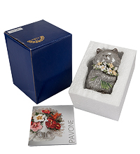 В период, когда будущие семейные отношения только-только начинают налаживаться, бывает так, что парень своей девушке даже букет цветов вручить стесняется. Потом это стеснение пройдет, а сейчас-то что делать? Вот и нужен для этого посредник, например, такой милый котик. Вот он стоит на задних лапках, а в передних держит целую охапку цветов, нежные фарфоровые лепестки которых так похожи на живые. Держит и слегка улыбается, передавая привет от того, кто его вручил. И будет этот котик с букетом стоять на полке много лет, напоминая о первых свиданиях и первых знаках внимания. А цветы у него всегда будут свежими, ослепительно белыми и красивыми.