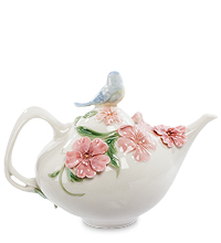 По совместительству фигурка птички играет роль шишечки, за которую можно открыть чайник. Это – фарфоровое изделие, в нем вполне можно заварить чай и разлить его по чашкам, взявшись за удобную ручку. Подарок из такого чайника получается отличный – необычный, красивый и практичный. Любое чаепитие будет напоминать о том, кто его подарил.