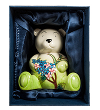 Миловидный мишка, вызывающий улыбку – это не просто копилка, он словно маленькое чудо. Нежные цвета, переход от белого к светло-зеленому, маленькие лапы делают его еще более милым и обаятельным. Цветы, которые он держит в лапах насыщенного розового и голубого цветов придают ему привлекательность, яркость и игривость. Копилка сможет стать превосходным хранилищем для ваших сбережений.