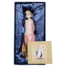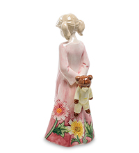 Девочка в длинном, до земли, свободном платье, вышла прогуляться, прихватив любимого игрушечного медвежонка. Но взгляд ее спокоен и печален – что-то нерадостное у нее в жизни случилось. Но все это – временно, мысли пройдут, тревоги растают, и снова все будет хорошо. Недаром на подоле ее платья такие красивые цветы – так и кажется, что она ступает по цветам, вырастающим там, где она проходит. Наверно, она идет по грани, зыбкой границе между детством и юностью.