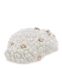 Беленькая кудрявая овечка и сама по себе красива, так ее еще и цветами украсили – нежными, розовыми, с зелеными листиками. Похоже, она сама гордится своим удивительным видом. И даже устроившись на отдых, выглядит абсолютно довольной собственной жизнью. Маленькая фигурка, на которую просто невозможно посмотреть, не улыбнувшись, станет отличным украшением в любой комнате. Поставьте ее на свой рабочий стол, и она будет постоянно напоминать: хватит работать, надо и отдохнуть, берите с меня пример, устройтесь поудобнее, и ни на что вокруг не обращайте внимание!