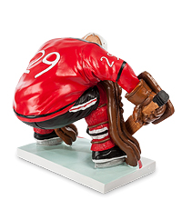 Фигурка хоккейного вратаря в полной амуниции - с головы, закрытой глухим шлемом, до ног с коньками. Одни лишь глаза видны и взгляд их строг и серьезен. Шуточная фигурка вратаря изображает полную боевую готовность. Одной рукой можно отбить шайбу клюшкой, другой – поймать в специальную ловушку. Все, что угодно, лишь бы не пропустить ее в ворота.