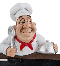 В любом кафе есть доска, на которой мелом пишут состав блюд, входящих в сегодняшнее меню. Эта доска, кроме своей практичности, еще и оригинально выглядит. По краям она оформлена кухонной посудой, а сверху над ней расположился сам шеф-повар. Сегодня он лично представит вам самое вкусное, что только смог приготовить.