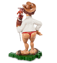 В руке – невообразимый шашлык, где все перемешалось – рыба и птица, колбаски и овощи. Похоже – Бразилия, именно там готовят такие смешанные блюда. Присмотритесь, на чем стоит наш кулинар – подставка-то под цвета бразильского флага раскрашена. Значит, угадали. Подарите статуэтку повара любителю южноамериканской кухни!