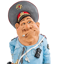 Веселая статуэтка, изображающая забавного стража порядка, придется ко двору в каждом доме. Смешной полковник будет уместен на самом видом месте в комнате или даже в прихожей, чтобы ваши гости сразу поняли, что особенно шалить не стоит. Художники постарались на славу и не упустили ничего — ни яркой формы, ни комичного выражения лица, ни сопутствующих атрибутов.