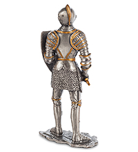 Оловянная фигура выполнена просто мастерски, доспехи отлично разрисованы, на щите имеется герб. Статуэтка воина будет прекрасно смотреться на рабочем столе сильного, уверенного в себе мужчины, но в то же время она отлично впишется и в домашний интерьер, украсив собой книжную полку.