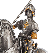 Как и полагается средневековому всаднику, он позаботился о коне, и защитил его голову металлическими латами. Красивая накидка сзади и спереди подчеркивает, что наш кавалерист не из числа рядовых. «Всадник на коне» - редкая композиция, которую можно встретить, пожалуй, лишь в исторических музеях.
