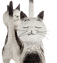 Представляете, как чувствует себя женщина, если увидит на ком-либо такое же платье, как и на ней. Да это – целая трагедия! Вот и здесь – даром что кошки: женщины, прежде всего, встретились. Одной все равно, что вокруг, зажмурила глаза и гордо выступает, зная себе цену и вызывая всеобщее восхищение. А вторая возмущена – у нее такая же раскраска. Позор! Что же делать! Отличный подарок моднице с пожеланием брать пример с первой кошки, а не со второй: всегда считать себя первой.