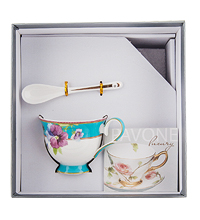 Размер чайной пары: 23 х 8,5 см; объем чашечки: 0,2л.