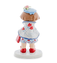 Что же этой маленькой леди не понравилось? Девочка красиво одета, голубое платьице с такого же цвета накидкой и плоской шапочкой, красные ботиночки и плетеная сумочка перекликаются с красным орнаментом на кромке платья. Ну, просто красавица, королева детского садика. Но что-то ее расстроило до слез, и она, зажмурив глаза, плачет громко и отчаянно. Может быть, потому, что мама ушла? Придется ей вернуться и уделить дочке внимание, чтобы она чем-нибудь заигралась и осталась спокойно. Молодой маме, собирающейся отдавать свою дочурку в детский сад, такая статуэтка придется кстати, напомнит, что не только о красивом наряде надо подумать…