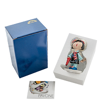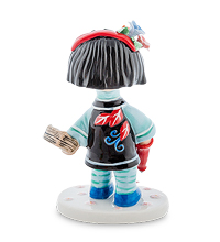 Маленькая девочка только научилась ходить, а уже стремится выглядеть модно и своим гордым видом старается показать, что она – настоящая леди. Ее аккуратная прическа прихвачена обручем с красивыми цветами на нем, на фартучке – тоже цветы, только вышитые. В одной руке модница держит ярко-красный зонтик – как раз под цвет вышитых узоров. В другой руке – настоящая дамская сумочка, хоть и не подходящая по своему цвету. Все, как у взрослых, а высоко задранный носик еще и роста добавит, так что никто эту красавицу малышкой не назовет. Статуэтку можно подарить уже подросшей девочке, чтобы она, одеваясь модно, вспоминала, какой она была совсем недавно.