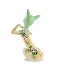 Необычная статуэтка «Кошка», изготовленная китайскими фарфоровыми мастерами. Нечасто встречаются фигурки животных, имеющие необычный цветовой окрас в виде градиентного перехода от желтого к зеленому. На спине у кошки мы видим оригинальные изображения цветов.