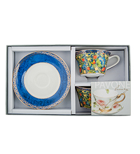 Размер чайной пары: 15,5 х 7 см; объем чашечки: 0,25л.