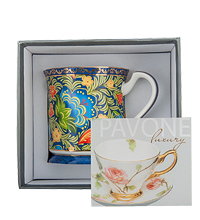 Размер чайной пары: 11,5 х 9 см; объем чашечки: 0,3л.
