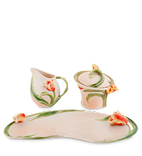 Гармония — это одна из определяющих основ чайного сервиза, в который входят сахарница и молочник «Тюльпаны». Выполненный на белоснежном фарфоре рельефный рисунок удивляет своей естественностью и совершенством. Сочетание нежного цвета свежей зелени и оттенков весенних цветов, позволяет настроиться на уютное чаепитие.