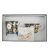 Чайный дуэт состоит из двух утонченных кружек и одной подставки к ним. Изящные формы, украшенные гармоничными узорами в виде цветов, превратят самое обычное чаепитие в настоящий праздник. Нежные цвета хорошо сочетаются между собой и создают картину, от которой невозможно оторвать глаз.