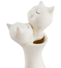 От фарфоровой вазы «парочка кошек» так и веет романтикой и любовью. Вместе с ней в дом обязательно придут уют и гармония отношений. Это отличный и оригинальный подарок каждой женщине, независимо от ее возраста и профессии, уместный дар для молодоженов и просто любимому человеку. Красочная и нежная по своему настроению ваза «Пара кошек» будет очень долго дарить своей счастливой обладательнице хорошее настроение и настоящую радость.