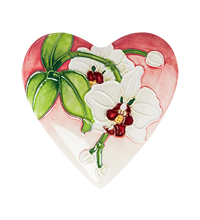 Найти настоящую взаимную любовь великая удача. Хочется радовать свою вторую половинку, засыпать ее цветами и нежностями. А что может сказать о ваших чувствах красноречивее, чем шкатулка "Сердце". Форма шкатулки поможет выразить любовь к близкому человеку, а оригинальный цветочный дизайн и практичность такого подарка не оставят равнодушной ни одну представительницу прекрасного пола. Основа с показной небрежностью окрашена в ярко алый цвет, а на крышке распускается великолепная белая орхидея. Мастера потрудились сделать очертания цветка объемными, что придало изделию изысканности и великолепия.