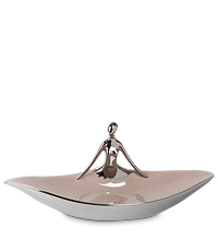 Из края блюда, напоминающего створку экзотичной морской раковины, как будто вырастает фигура молодой женщины. Пробуждение от подводного покоя навстречу жизни или, наоборот, плавное погружение в прозрачный водоем… От фигуры действительно веет спокойствием – никакой тревоги нет в ее жестах. Она здесь дома, где нет нужды стесняться посторонних глаз. Естественные движения, полное единение с природой. И только натуральные продукты – фрукты, виноград.