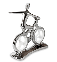Статуэтка «Веломоцион» сочетает в себе современную экстравагантность и классическое изящество. Концепция этого творения воспевает активность, энергичность и целеустремленность. Статуэтка изготовлена из керамики и, чтобы подчеркнуть красоту изделия, автор украсил его поверхность блестящим металлическим напылением.