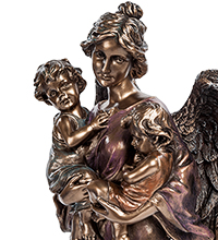 Фигурка «Ангел-хранитель» изображает ангела с двумя маленькими детьми на руках. Судя по лицу, волосам и платью, детей защищает женщина. Трогательная композиция демонстрирует не столько христианские постулаты, сколько материнскую любовь и заботу.