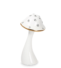 Утонченные плавные линии этого керамического чуда, его глубокий кристально-белый цвет, тоненькая золотая кайма на шляпке все эти детали вместе создают удивительную комбинацию характера и стиля. А блеск стразов только придает этому сказочному чудо-грибу немного вычурности настоящего шедевра.