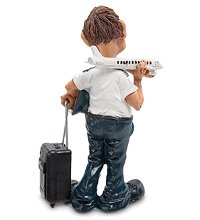 Оригинальная статуэтка летчика - элегантная и строгая летная форма, зеленые очки – конечно же, знаменитого типа «авиатор». Сумка с необходимыми в дальнем рейсе вещами. Вот только самолет, на котором приходится летать, представлен в виде модели – ничего, по уверенному виду можно заключить, что пилот со штурвалом большого авиалайнера вполне способен справиться.