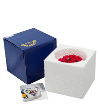 Но эти цветы – не живые, они не распустятся, зато и не завянут через несколько дней, не потеряют свой вид: эта ослепительно белая корзиночка с яркими розами будет долго украшать вашу комнату.