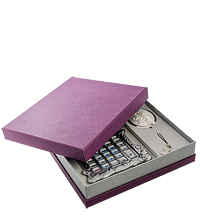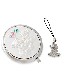 Набор из 3-х предметов: аксессуар для телефона + калькулятор + зеркальце со стразами Swarovski в подарочной коробке размером 23 х 20
