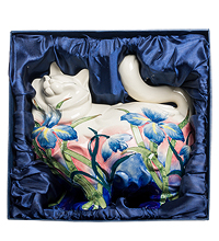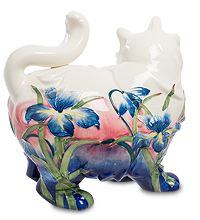 Изящная и завораживающая своей красотой фарфоровая статуэтка не дает отвести взгляд. Кошечка как будто притаилась в зарослях ирисов, так и хочется ее погладить! Порадуйте себя или своих близких таким милым домашним питомцем.