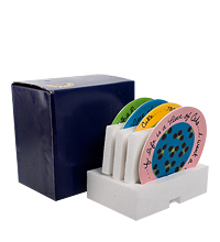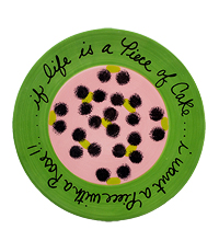 Вот они, эти десертные тарелки, разноцветные, напоминающие крупные цветы подсолнуха: ободки одноцветные, а серединка покрыта черными точками, как будто семечками. И на каждой тарелке – своя надпись. При дележе праздничного пирога придется эти надписи учитывать, может быть, некоторые гости захотят тарелками поменяться. Короче – веселое оживление за столом неизбежно возникнет, и десерт станет веселым заключительным этапом праздничного обеда.