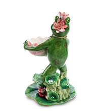 Эта лягушка явно скрывает в себе царевну. Во всяком случае, стоит она с царственной осанкой, на голове у нее целая корона из цветов, на шее – золотая цепь с кулоном в виде бабочки. А перед собой она держит роскошный цветок, среди бело-розовых лепестков которого и скрывается лампочка этого светильника. Если такую композицию поставить в детскую комнату, она не просто создаст уютный полумрак и позволит не бояться темноты, но и будет постоянно напоминать о сказке. А поскольку это не просто светильник, а арома-лампа, то к уюту красивого освещения добавится аромат цветов. Действительно красивая и удобная вещь!
