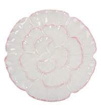 Благодаря имитации бутона цветка, тарелочка кажется невероятно нежной и даже ажурной. Мастера Pavone предприняли оригинальный дизайнерский ход и вместо привычного нам всем ярко-алого окраса, эта гвоздика обрела снежно-белый оттенок с легкой, практически невесомой, розоватой каймой.