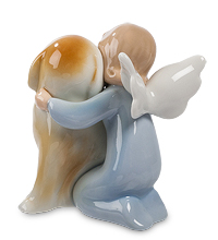 Маленький мальчик с крупным псом – большие и верные друзья. Малыш – симпатичный, как ангелочек, вот даже крылышки у него за спиной видны. К четвероногому другу он прижался, стараясь его приласкать и погладить. Пес отвечает взаимностью, нагнув голову к малышу: вот-вот лизнет его прямо в лицо. Такая дружба бывает долгой и верной: мальчик будет расти, а пес будет ему и партнером по играм, и охранником, и помощником. Кому подарить такую фигурку? Ребенку, который мечтает о собственной настоящей собаке? Нет, лучше тому, у кого собака уже есть – это будет просто портретом двух верных друзей, сделанным на память.