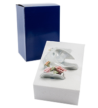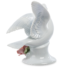 Голубь – птица красивая. И пусть он не имеет павлиньей пестроты окраски своих перьев, не горделивый изгиб его шеи и короткие, но мощные крылья можно долго смотреть, не отрываясь. Недаром именно эту птицу считают символом мира, добра и благополучия. Этот фарфоровый голубь приземлился среди красивых цветов – нежнейшие розы с тонкими фарфоровыми лепестками окружают его. И смотрит на всех окружающих спокойно и уверенно: красота и покой должны всегда царить там, куда прилетает голубь мира. Подарить такую статуэтку можно в знак примирения, позабыв о старых разногласиях. Но этот голубь среди цветов будет и отличным украшением в доме: ведь это – красивая птица!