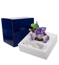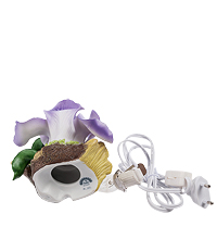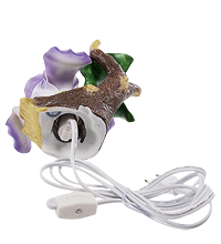 Светильник как будто является частью живой природы. Его корпус – часть ствола дерева, старого, с облупившейся корой. В развилке между ветками – нежная композиция из розовато-фиолетовых цветков ириса с яркими зелеными листьями под ними. И там, среди тонких фарфоровых лепестков, спрятана лампа, свет которой разгоняет тьму и создает в комнате удивительно уютную атмосферу. Такой ночник удобно поместить в спальне или в детской комнате, чтобы ночью при необходимости встать не приходилось искать дорогу в темноте. И красиво, и удобно. В комнате всегда будет кусочек теплого лета с солнцем, зеленью листьев и цветами.
