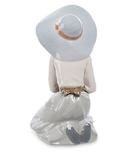 Девочка отправилась погулять в сад. И, став на колени перед цветочной клумбой, нарвала целую охапку разноцветных цветов. Скорее всего, она отнесет их в дом и поставит на столе в вазе, но думает она совсем о другом. Как бы хорошо было, если бы эти цветы ей подарил парень, который ей нравится. Но он, похоже, еще немного не дорос до ухаживания за своей ровесницей. И девочке придется годик-другой подождать. Все впереди, и в ее жизни будет много разных букетов, в том числе, и от любимого человека. А пока не надо грустить – можно поспешить домой и порадовать букетом всех своих домочадцев.