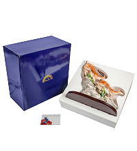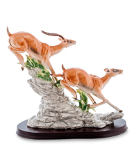 Тонкие и четко выраженные линии, гармоничность и экспрессия бега – все это очень хорошо передает композиция «Олени». Семья оленей запечатлена в момент опасности, спасаясь бегством, художнику удалось очень выразительно передать движение животных, подобрать мягкие цвета оформления, что без сомнения будет достойно оценено знатоками фарфора.