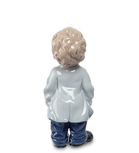 Кто не мечтает занять высокое кресло или стать крутым бизнесменом? Наверное, многие, а некоторые мечтают об этом с самого детства, готовя себе необычную молодость. Фигурка «Мальчик» демонстрирует нам не по годам взрослого мужчину. Темно-синие джинсы неплохо сочетаются с черными лакированными штиблетами, а светло-голубой пиджак одет на белую рубашку, с расстегнутого ворота которой свисает розовый галстук.